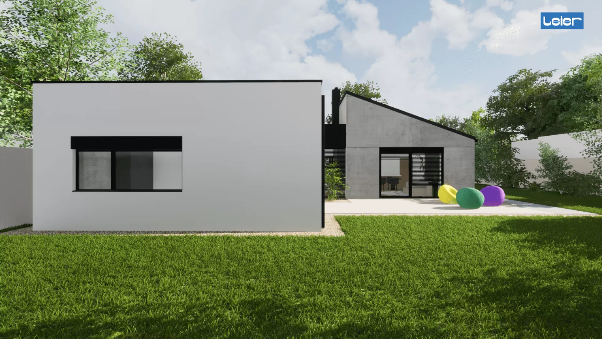 - homlokzat világos, Baumit egyszínű nemesvakolat, 1,5 mm szemcsenagysággal